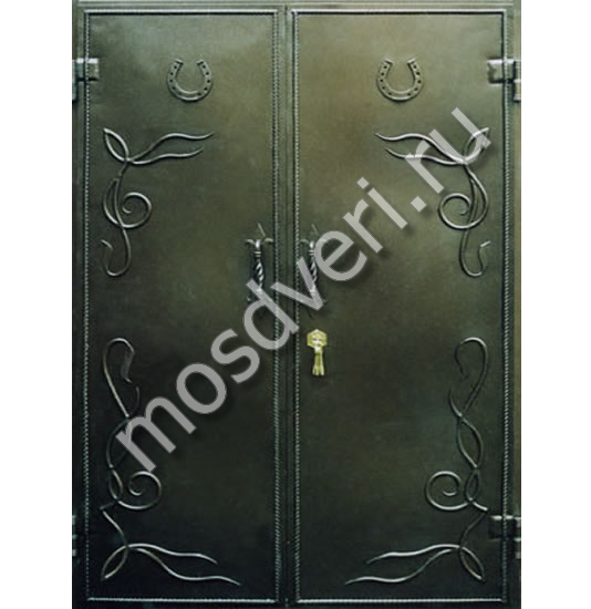 Двустворчатая порошковая дверь с элементами ковки — сочетает в себе эстетичность и превосходные защитные характеристики.