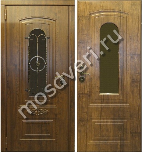 Элитная дверь в загородный дом с ковкой из массива в Луге